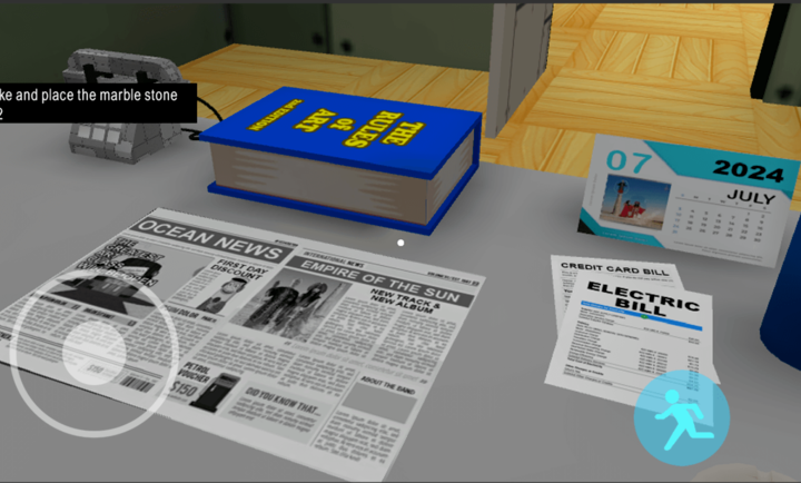 3、接着操控角色来到书桌旁,将视角中间的圆点对准账单后点击手的图标查看电器账单。